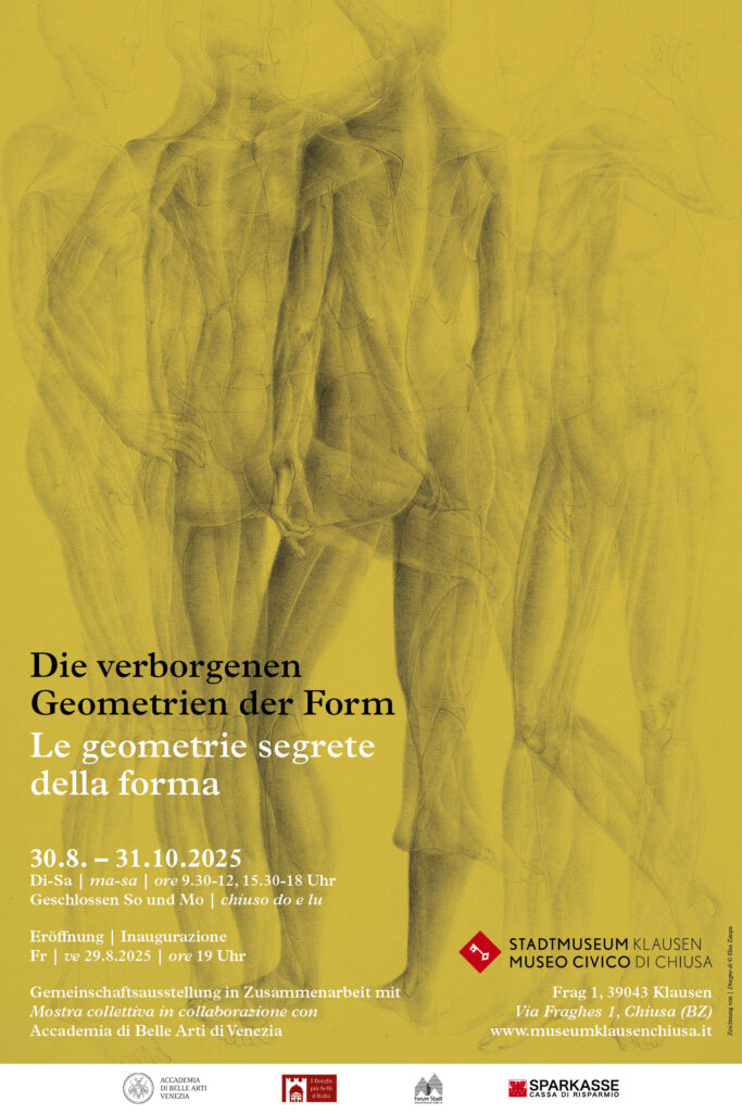 On August 29, 2025, the City Museum of Chiusa will open the exhibition The Hidden Geometries of Form, organized in collaboration with the Accademia di Belle Arti in Venice and curated by Professors Mauro Zocchetta, Patrizia Lovato, and art historian Marina Manfredi.