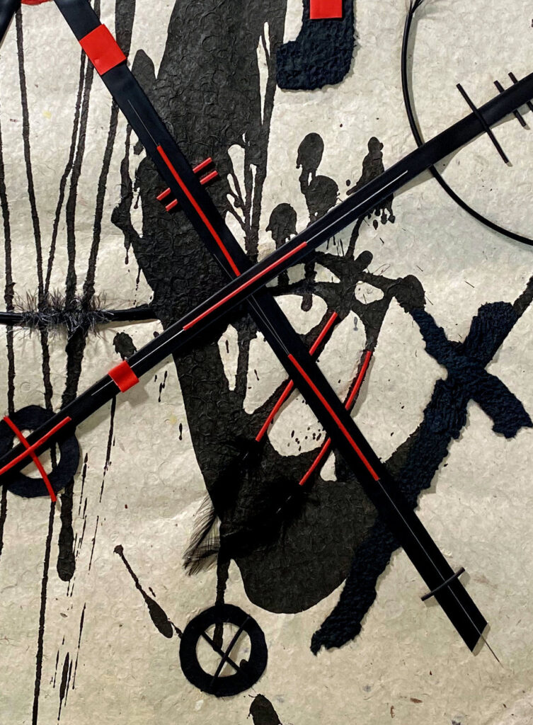 Fig.: Karin Oestreich: The Cross with the Little Cross, mixed-media collage, 95 × 70 cm, 2025 (detail) © K. Oestreich