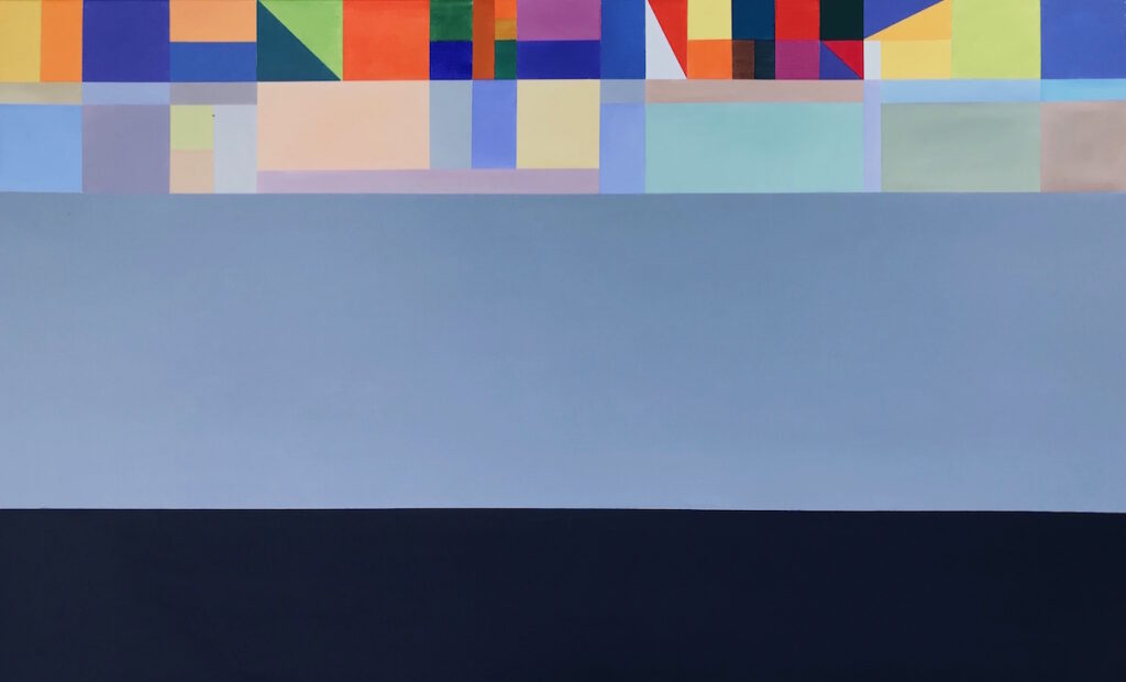 Fig.: Irene Schramm-Biermann, Democratic Life Worldwide 2025, acrylic on canvas, 80 × 130 cm, 2025